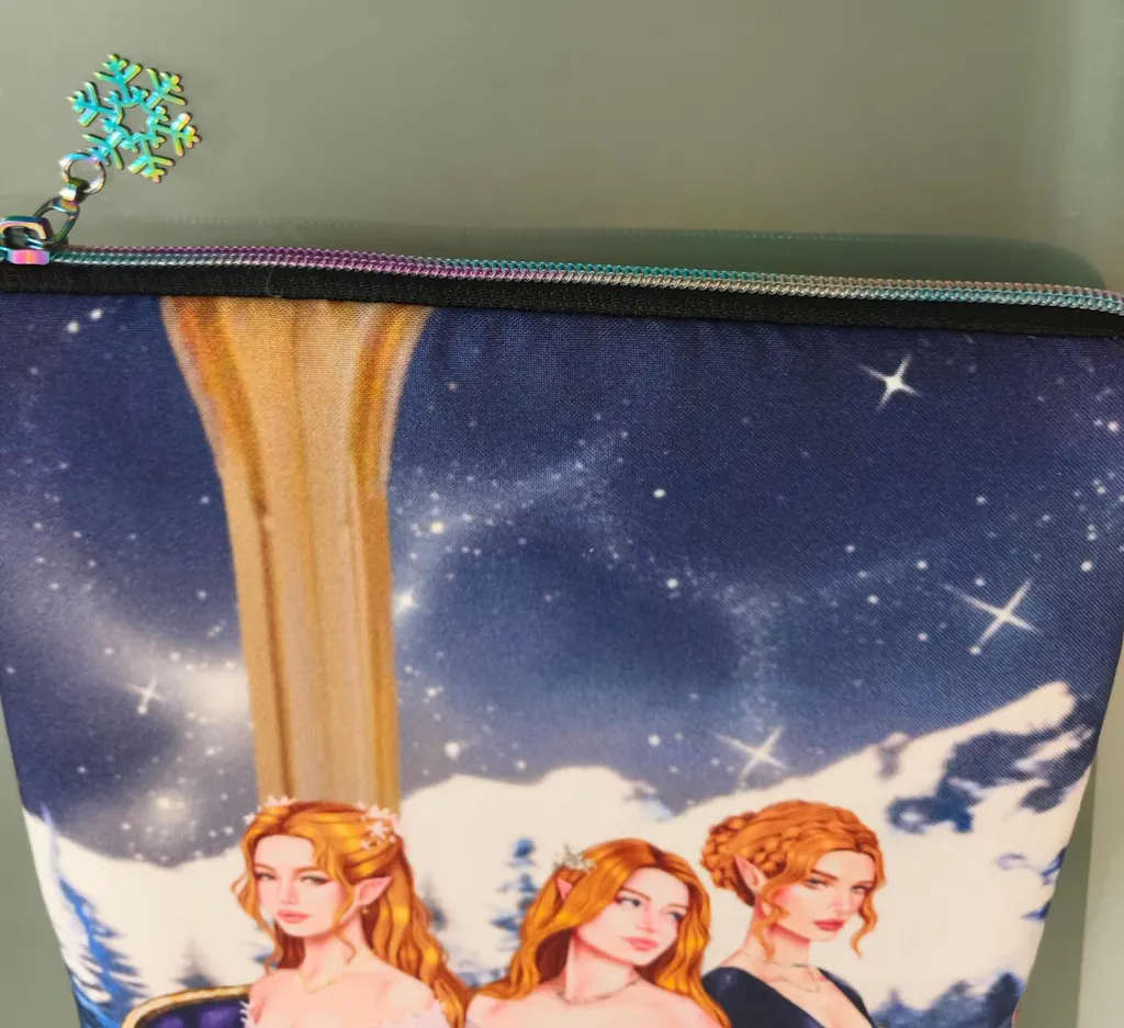 Compré esta funda en la anterior preventa y es tan preciosa, no solo los colores, la ilustración en sí es perfecta, tiene un charm precioso en forma de copo de nieve y es holográfico. Volveré a comprar en la siguiente preventa porque estas fundas protegen muy bien a mis libros, incluso cuando estos son lecturas con un alto número de páginas.