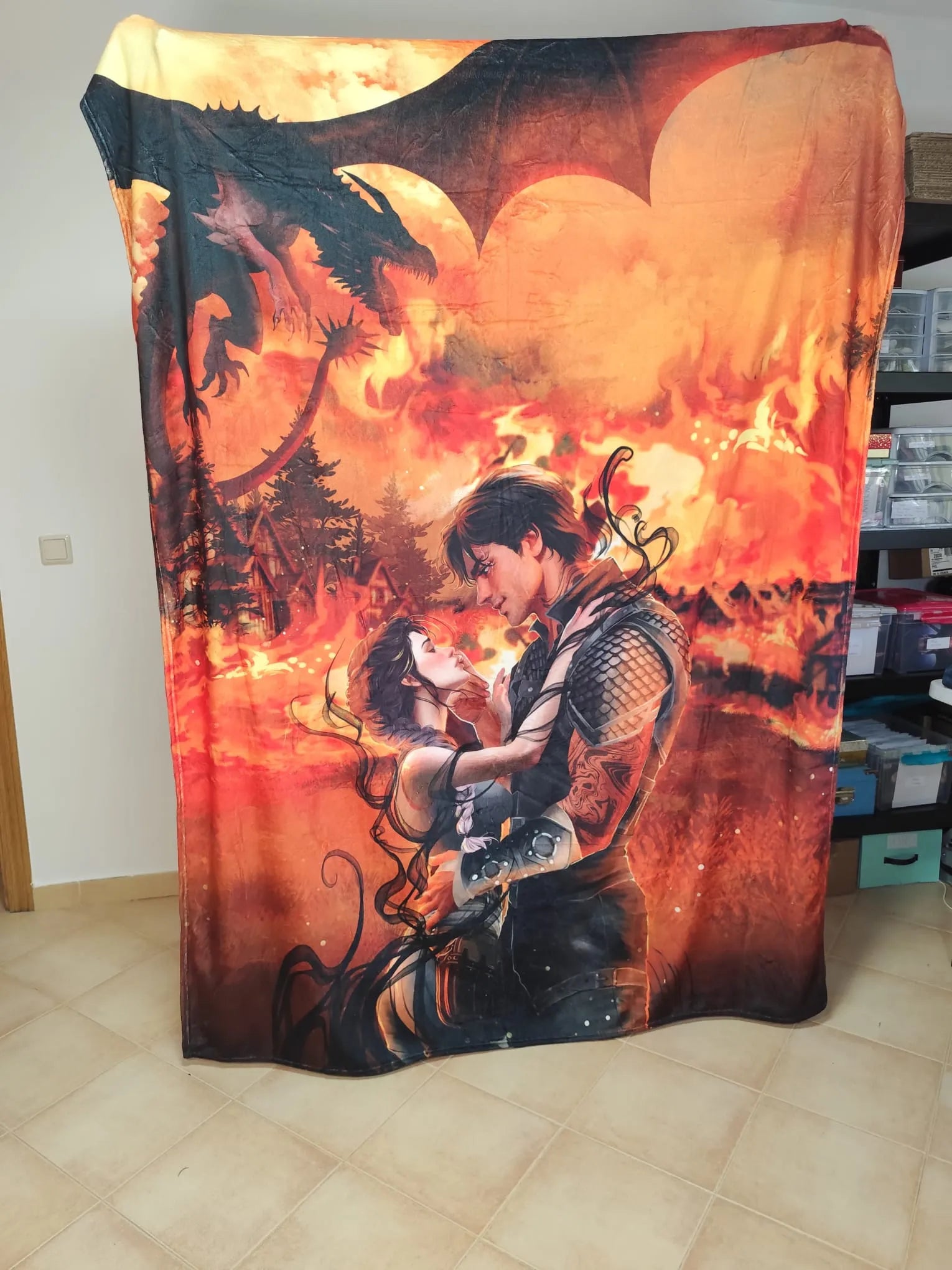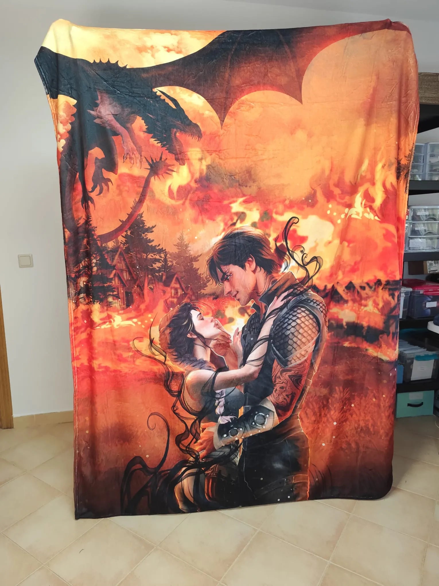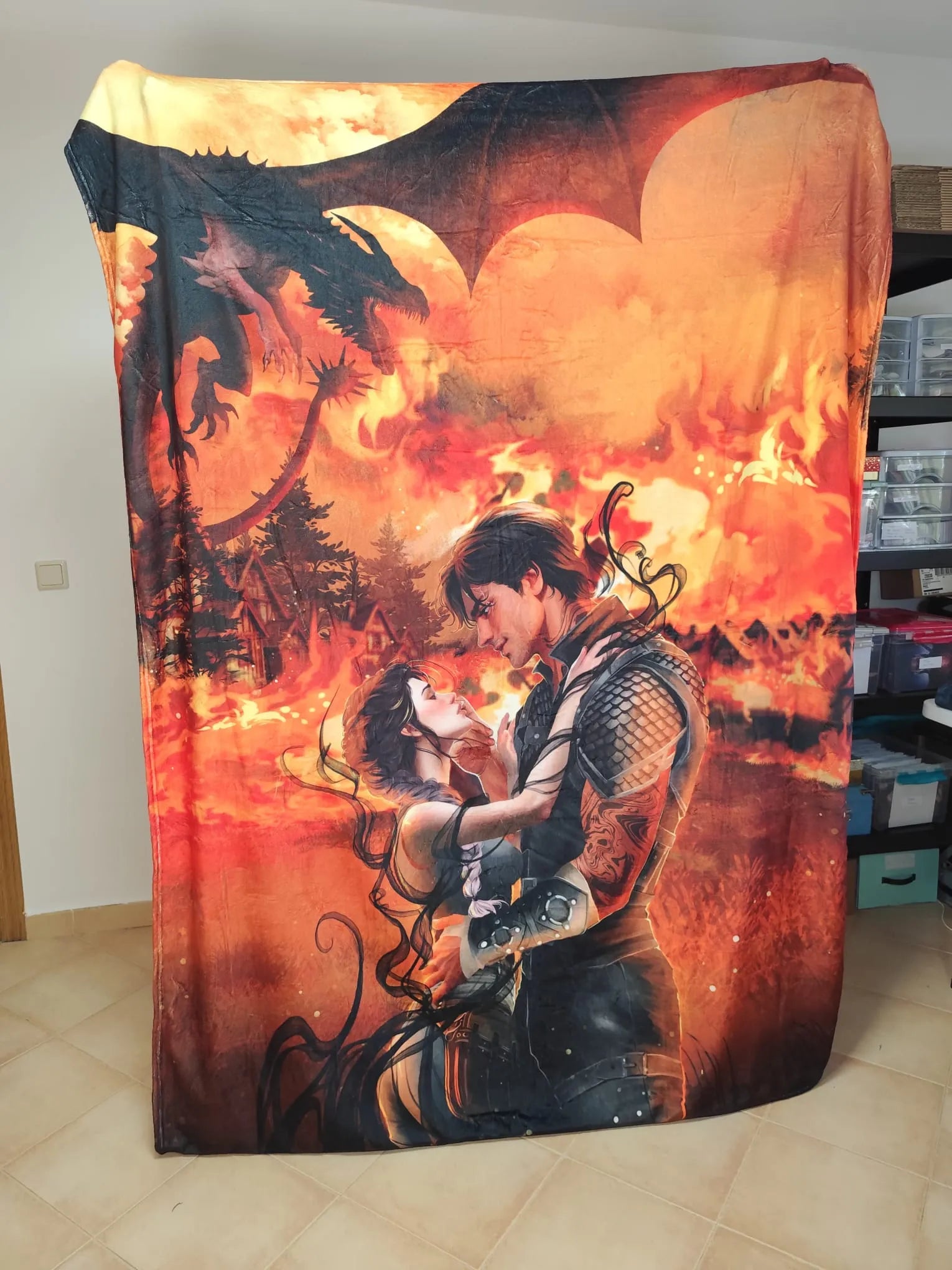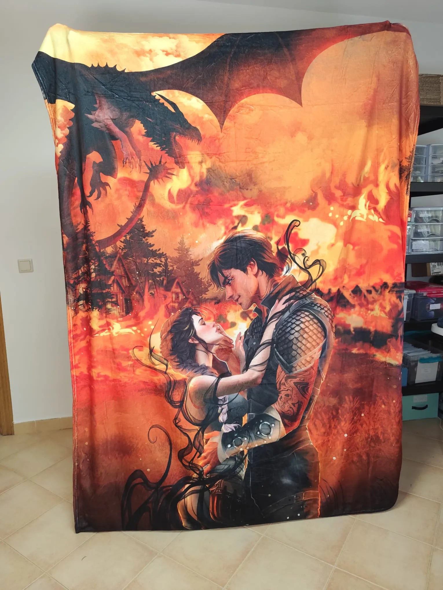 Manta de Violet y Xaden y Tairn fuego - Alas de Sangre
