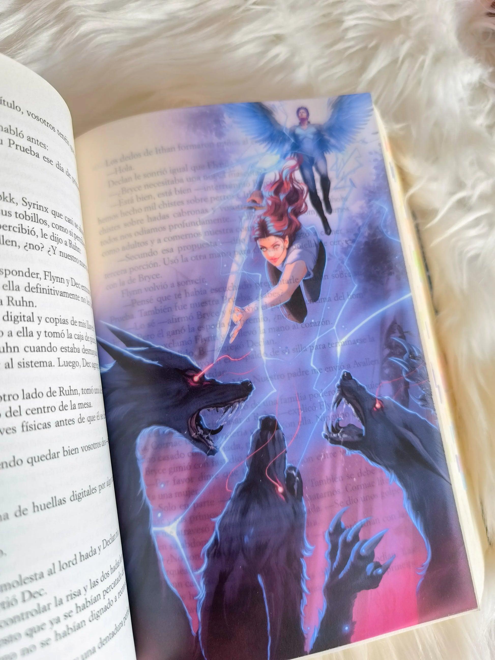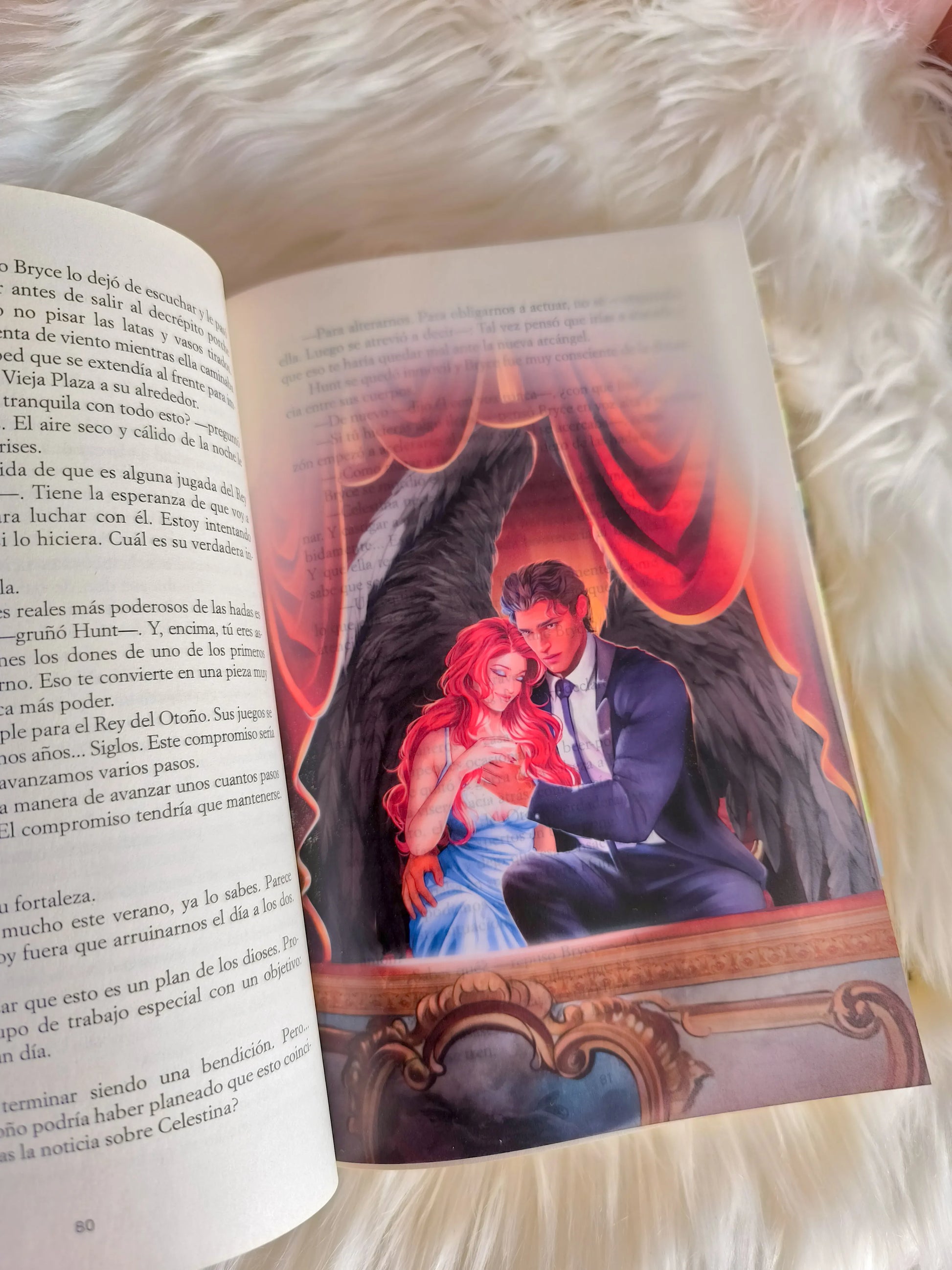 El arte representado en los productos es completamente original para mí y ha sido aprobado por Sarah J. Maas para su uso en los productos. A pesar de dicha aprobación, Sarah J. Maas no ha colaborado conmigo de ninguna manera en la creación del arte, y los rasgos de los personajes representados en el arte no se basan de ninguna manera en mi conocimiento previo de los rasgos de los personajes en futuros libros de Sarah J. Maas.