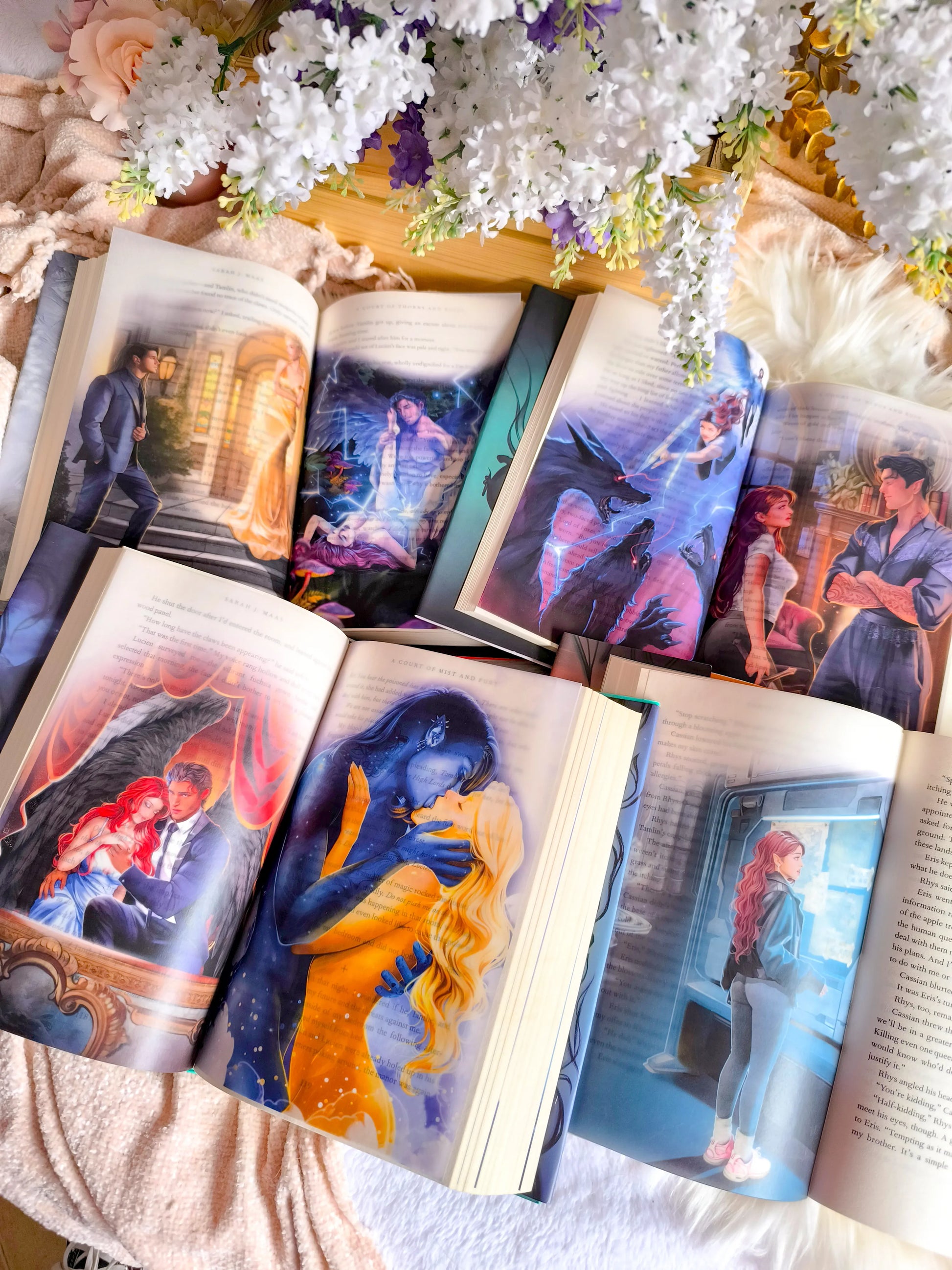 El arte representado en los productos es completamente original para mí y ha sido aprobado por Sarah J. Maas para su uso en los productos. A pesar de dicha aprobación, Sarah J. Maas no ha colaborado conmigo de ninguna manera en la creación del arte, y los rasgos de los personajes representados en el arte no se basan de ninguna manera en mi conocimiento previo de los rasgos de los personajes en futuros libros de Sarah J. Maas.