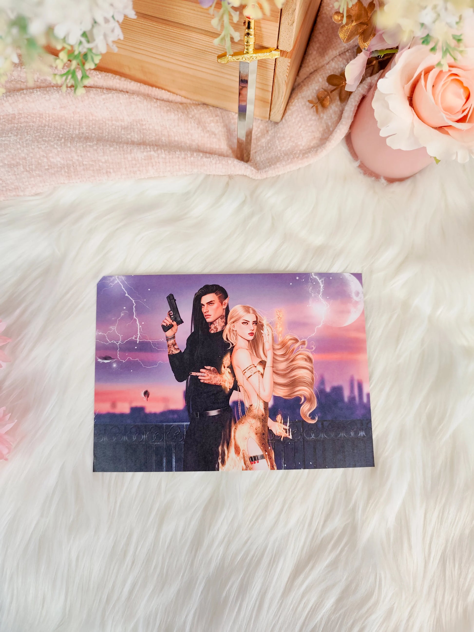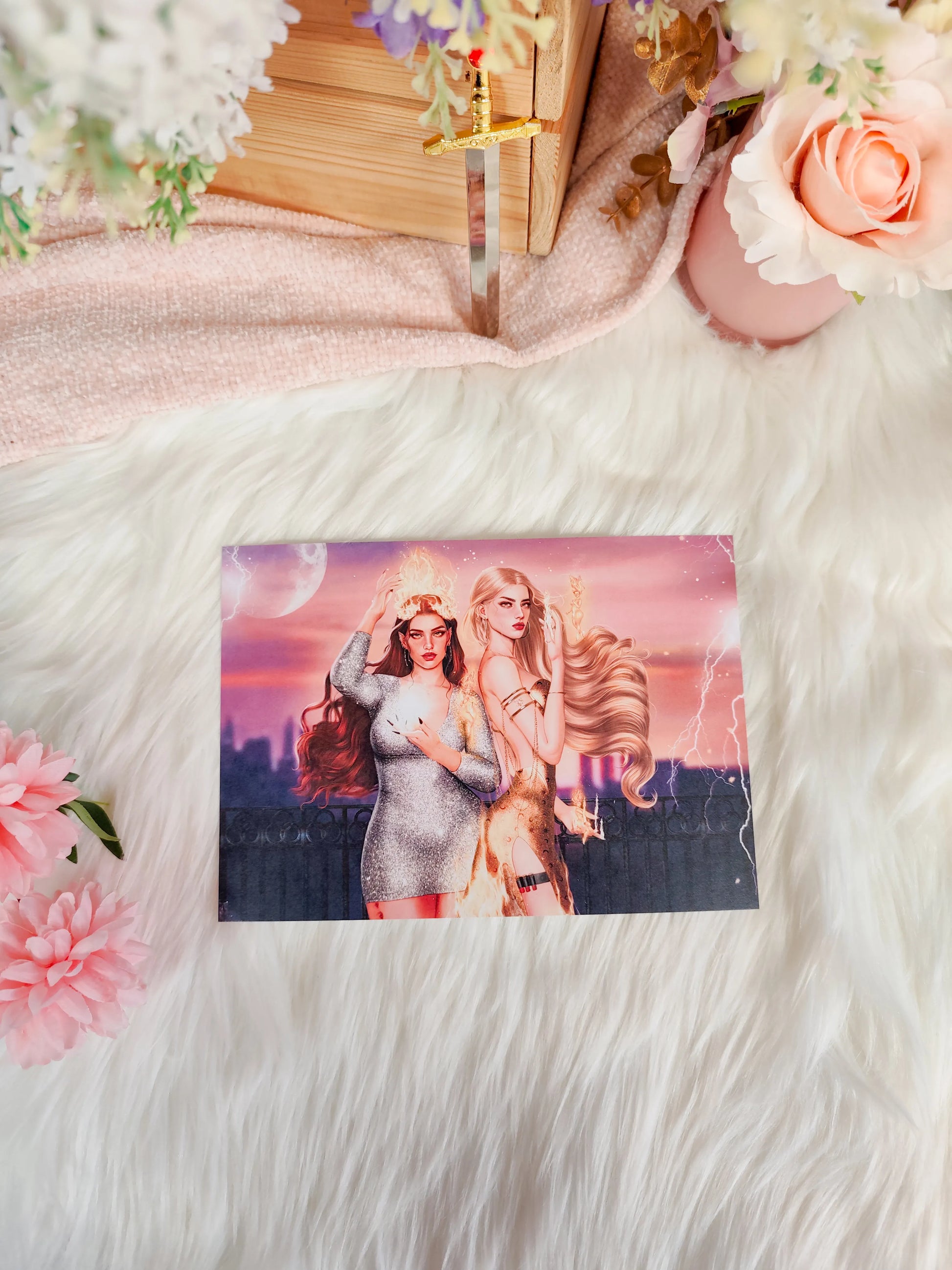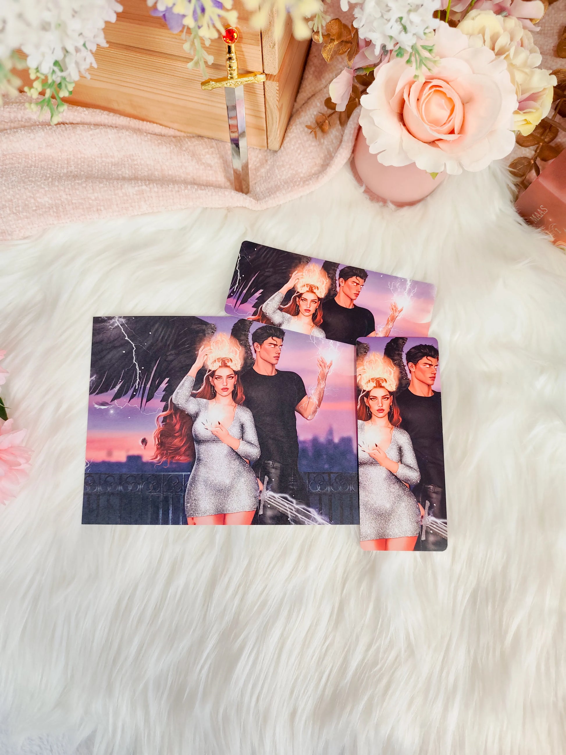 El arte representado en los productos es completamente original para mí y ha sido aprobado por Sarah J. Maas para su uso en los productos. A pesar de dicha aprobación, Sarah J. Maas no ha colaborado conmigo de ninguna manera en la creación del arte, y los rasgos de los personajes representados en el arte no se basan de ninguna manera en mi conocimiento previo de los rasgos de los personajes en futuros libros de Sarah J. Maas.