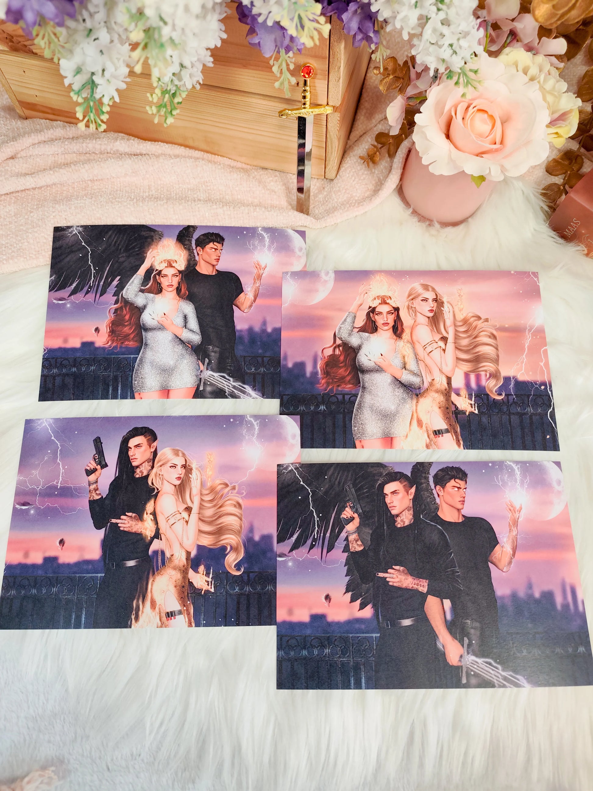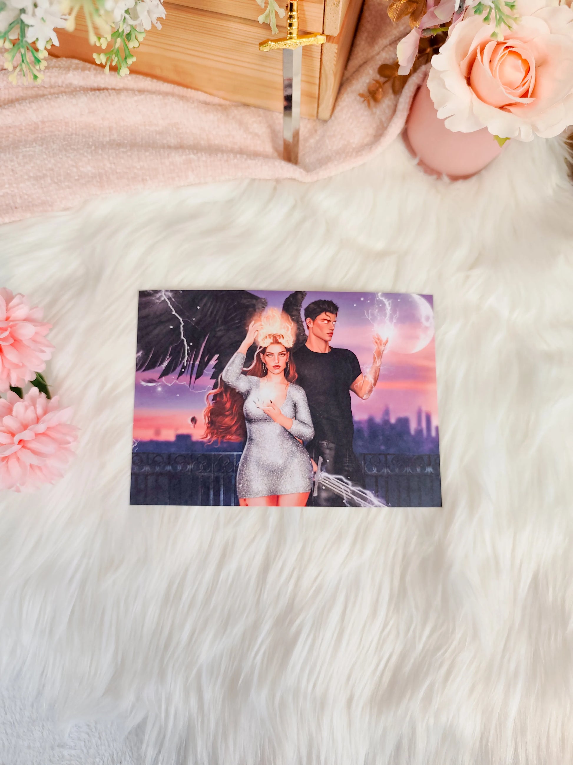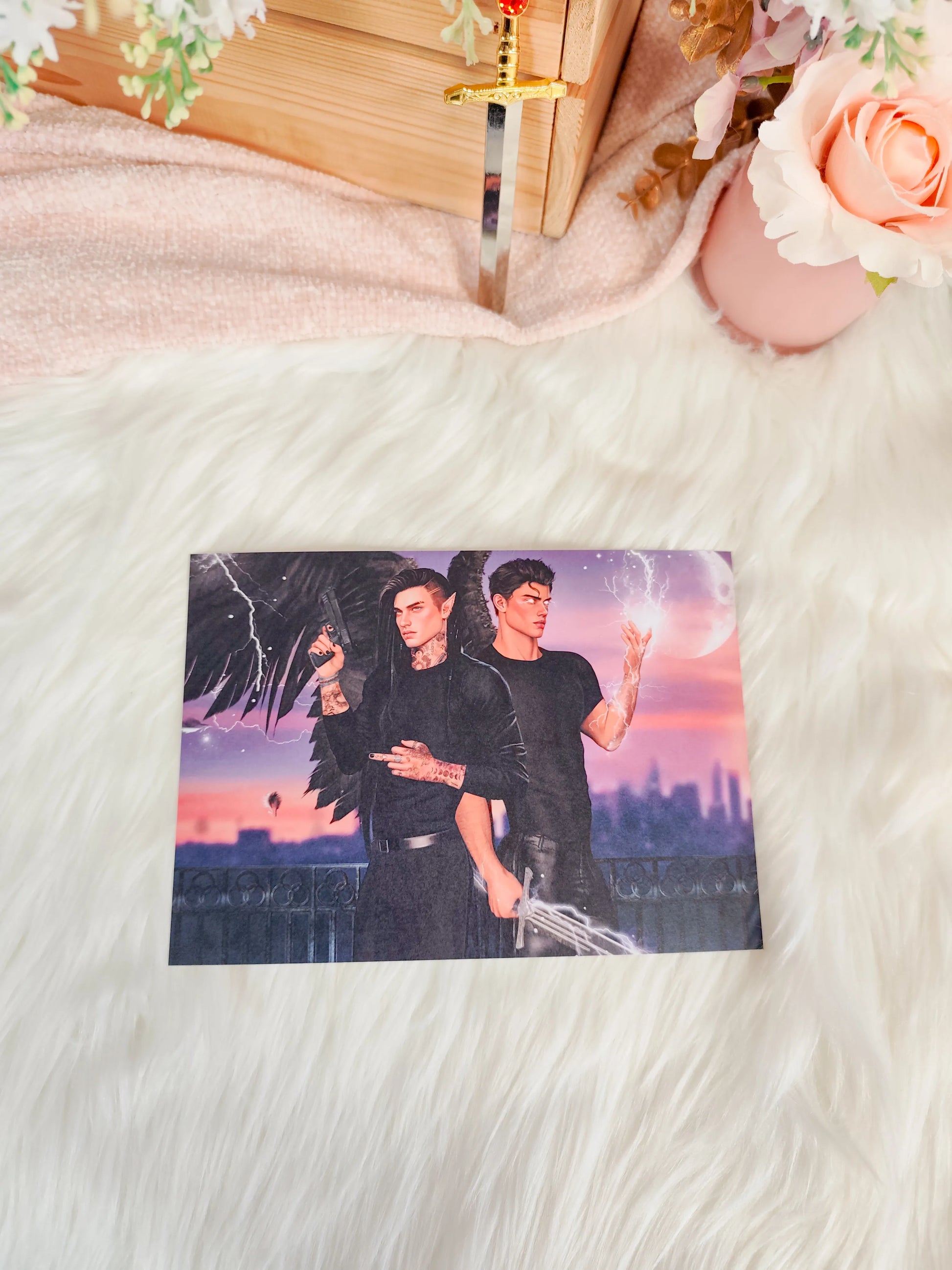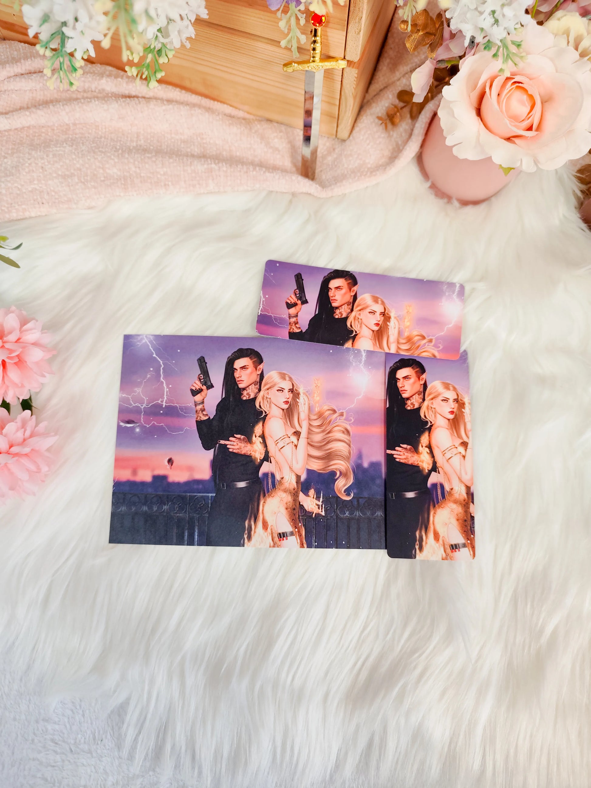 El arte representado en los productos es completamente original para mí y ha sido aprobado por Sarah J. Maas para su uso en los productos. A pesar de dicha aprobación, Sarah J. Maas no ha colaborado conmigo de ninguna manera en la creación del arte, y los rasgos de los personajes representados en el arte no se basan de ninguna manera en mi conocimiento previo de los rasgos de los personajes en futuros libros de Sarah J. Maas.